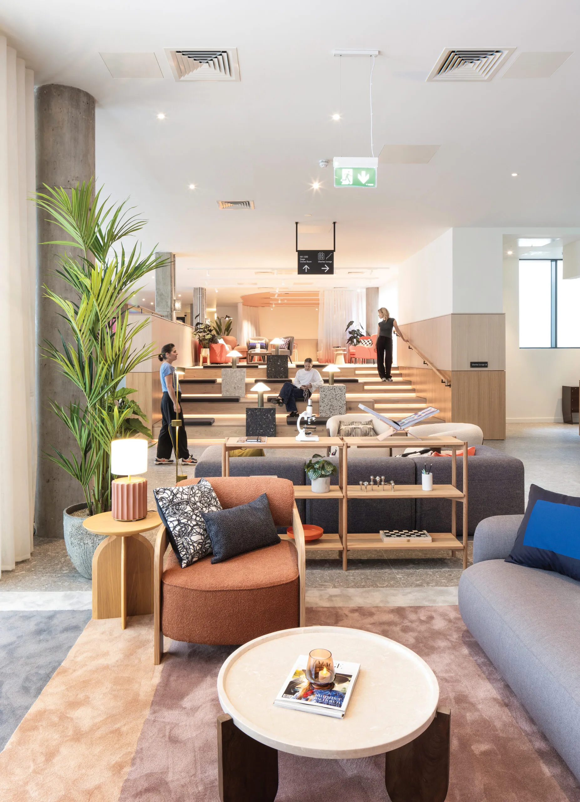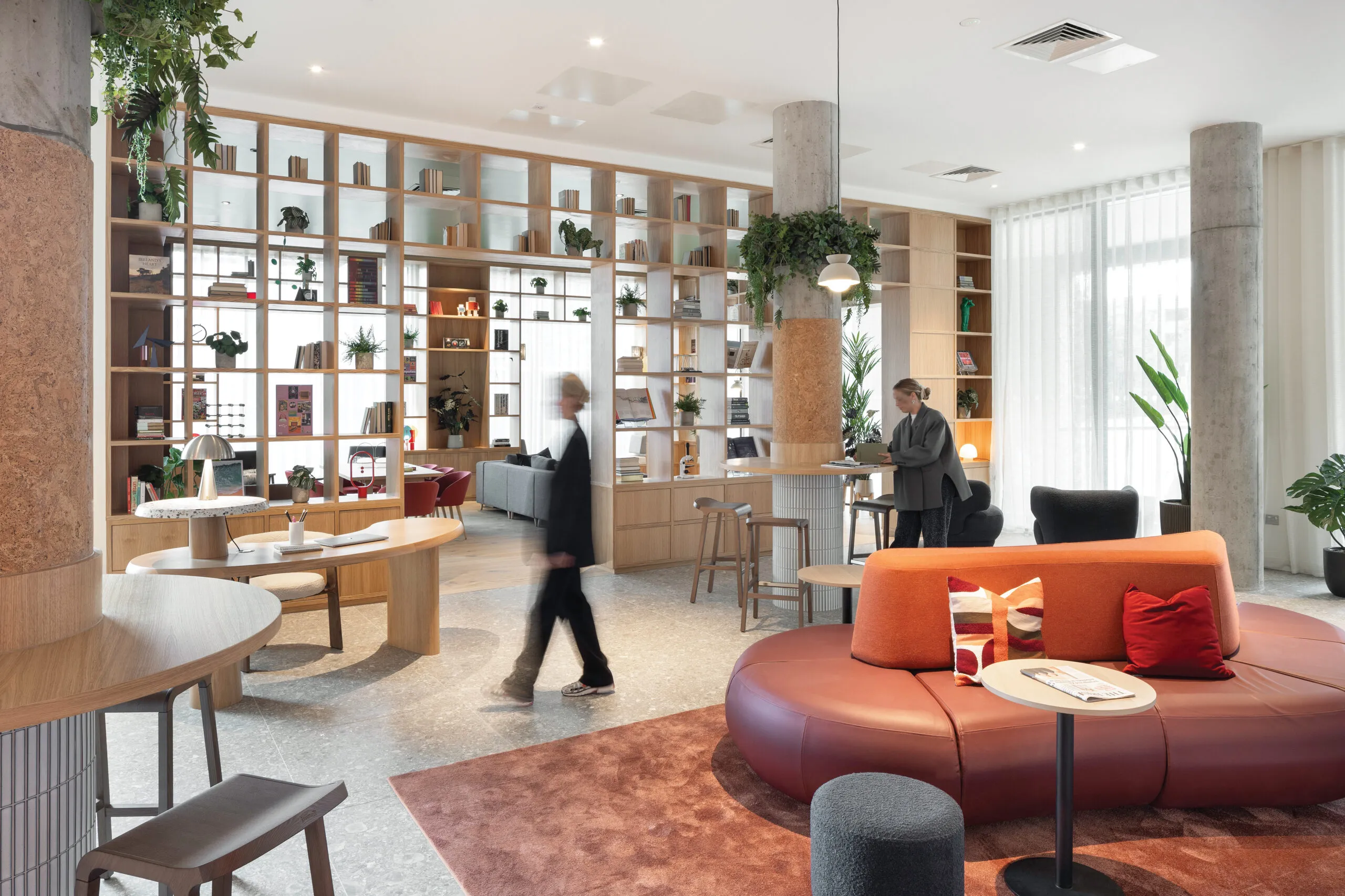 The amenity spaces included a welcome area, cinema room, library space, gym, shared kitchens and living areas, co-working desks and performance stage.