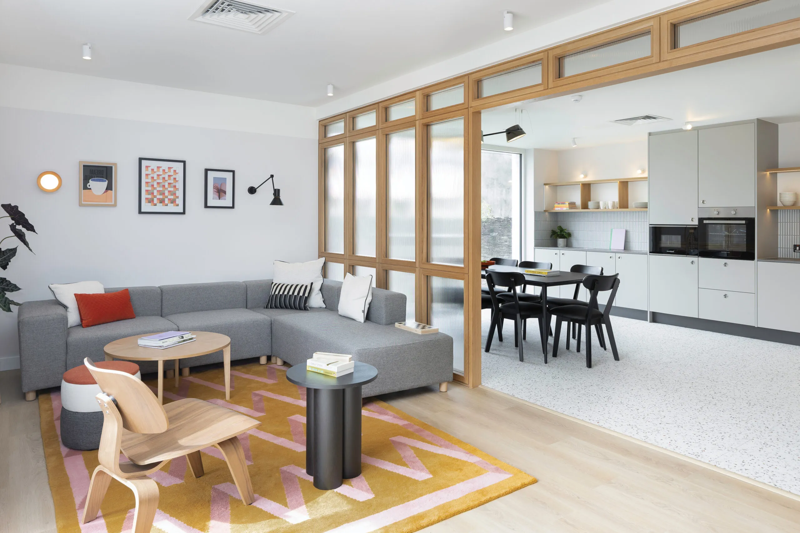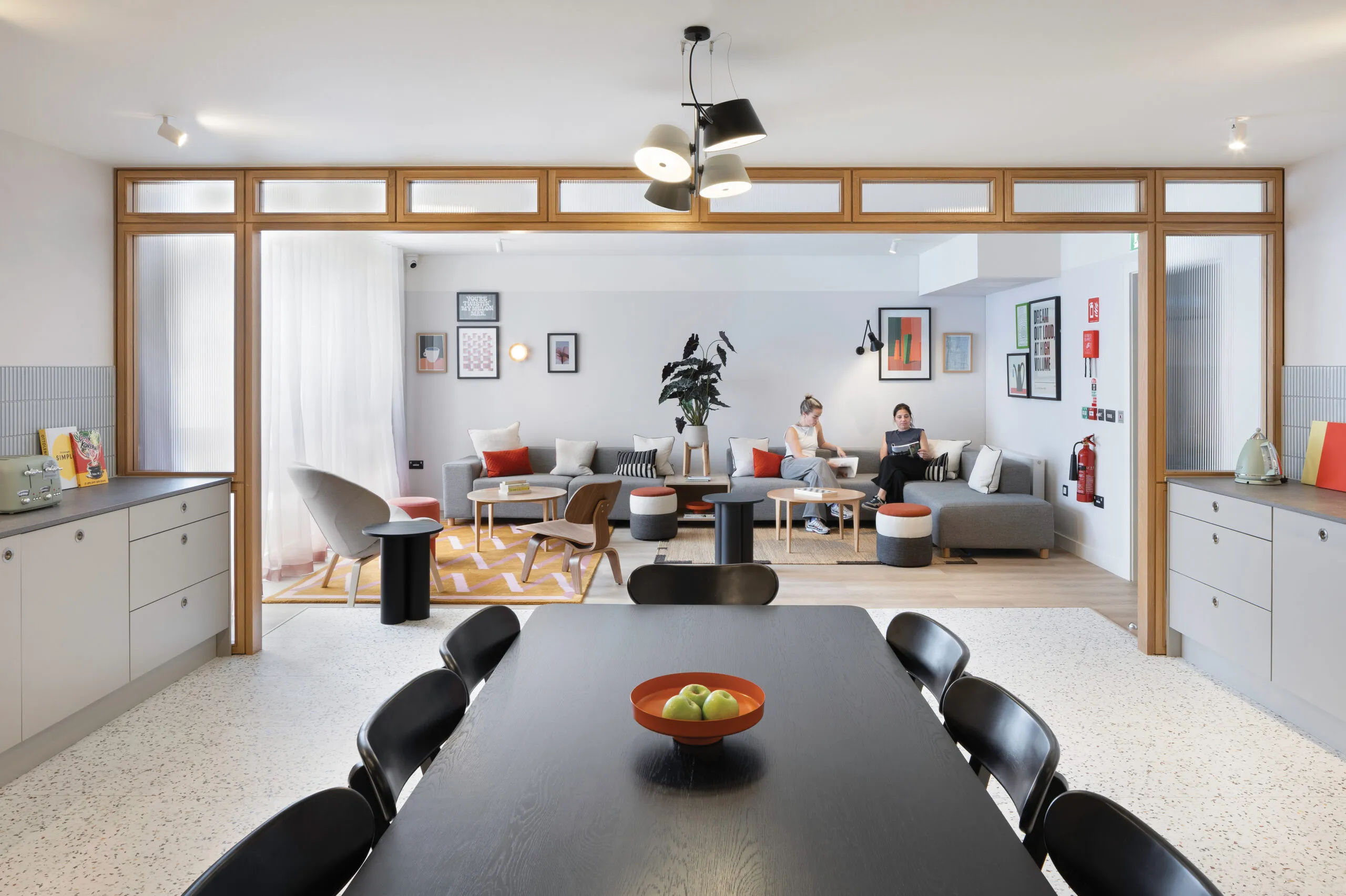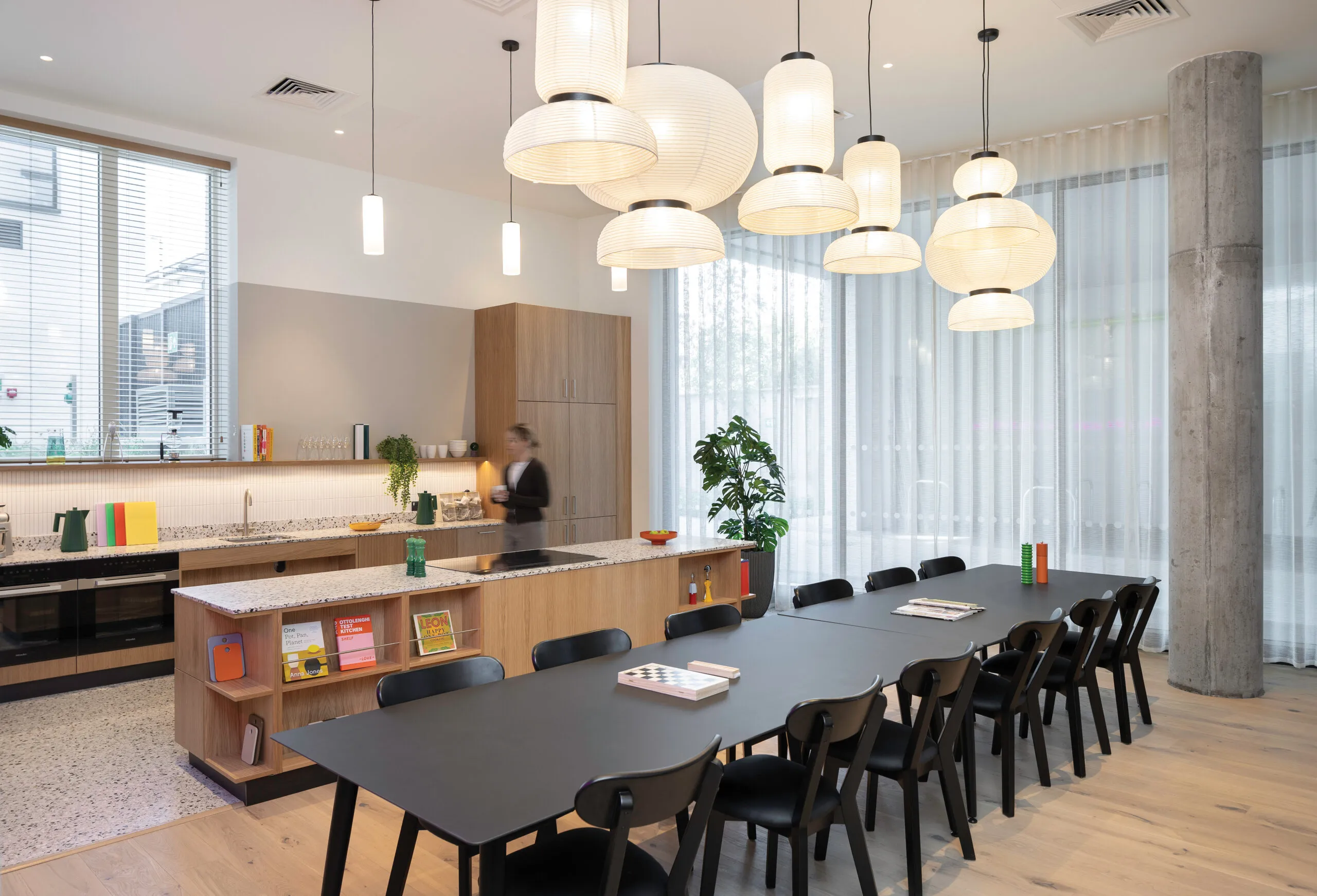 Total Fitout managed the complete design, manufacture, and installation of bespoke furniture across 13,224 sq. ft., completing the project in just nine weeks. Natural, durable materials and biophilic design principles were incorporated to enhance sustainability, while shared spaces and wellbeing programming created a vibrant, community-focused environment.