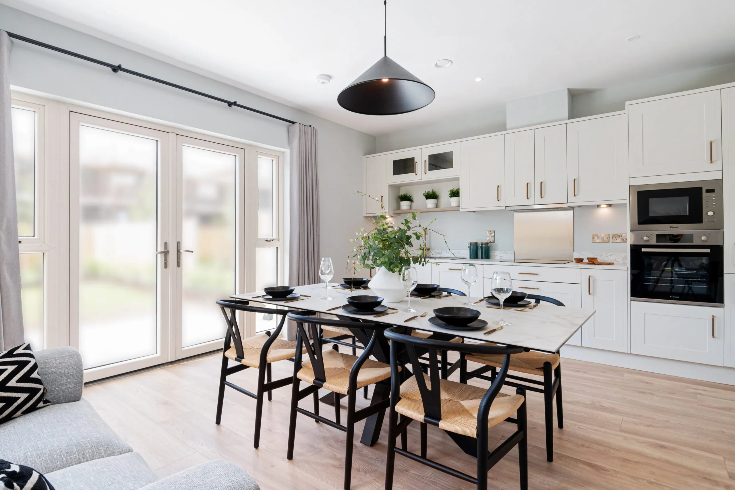 The target market was at the forefront of our minds during the design process. A family home near Dublin, aimed at young professionals, was the subject of our interior design work. Each of the four show houses was completed in a slightly different style. The styles range from fresh Japandi-style interiors to a more classic look in the five-bedroom show house.
