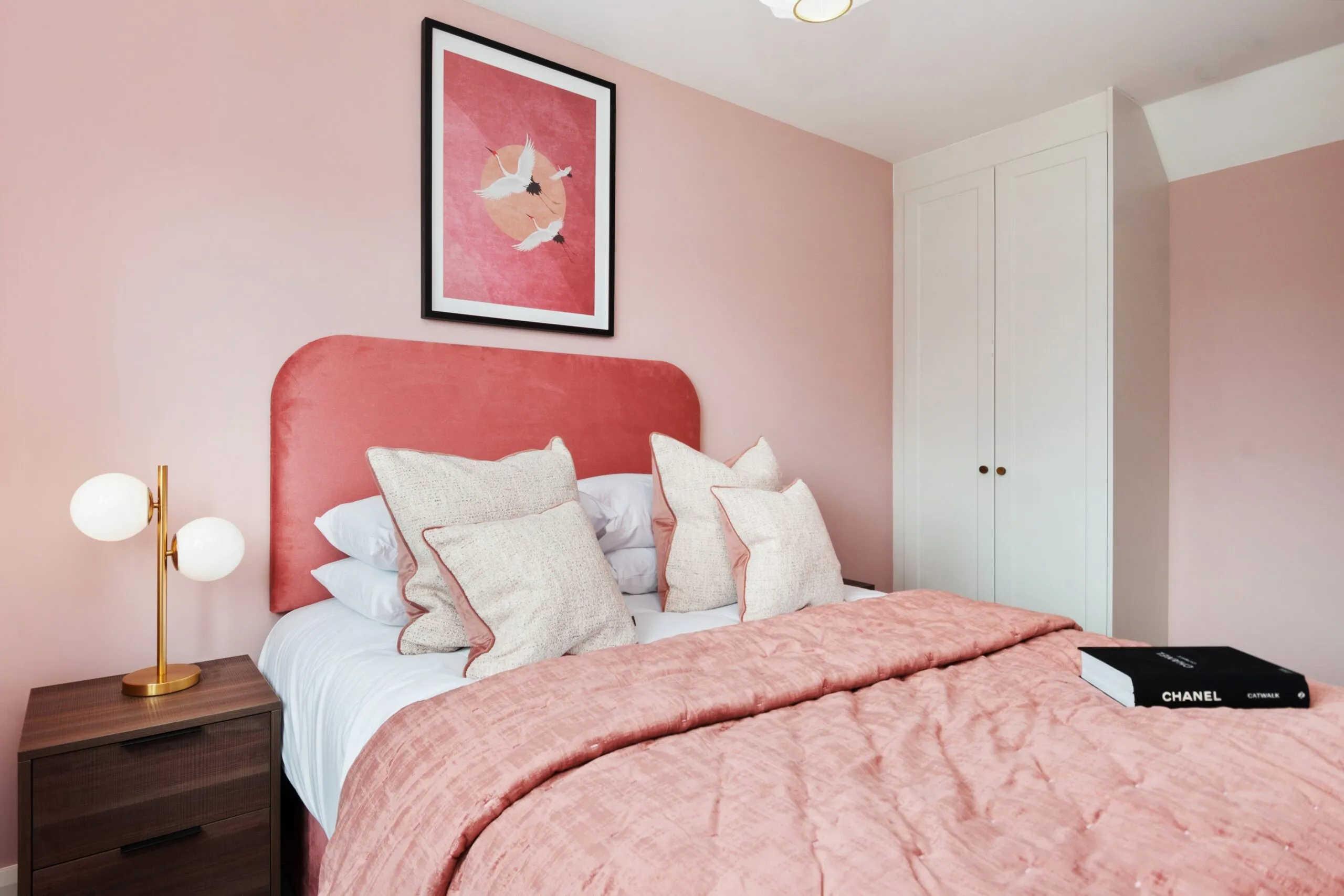 A beautiful blend of neutral colours and natural woods was used along with rich accent colours such as greens, teals, blues, and pinks to tie each space together and bring warmth to these homes.