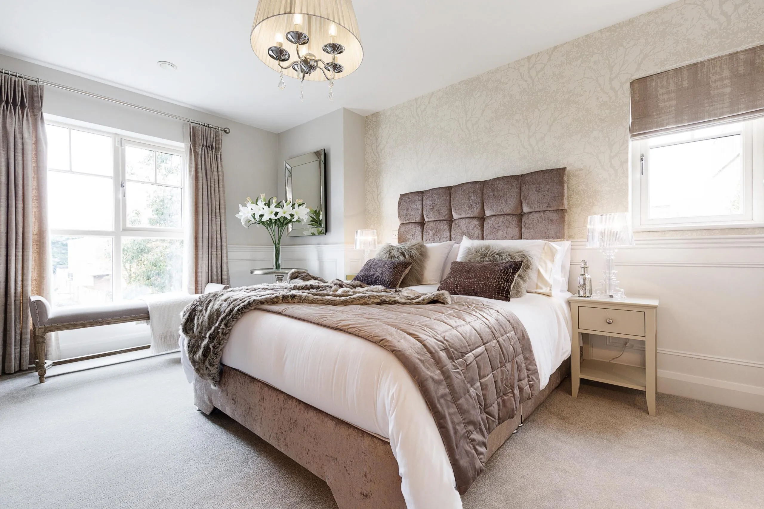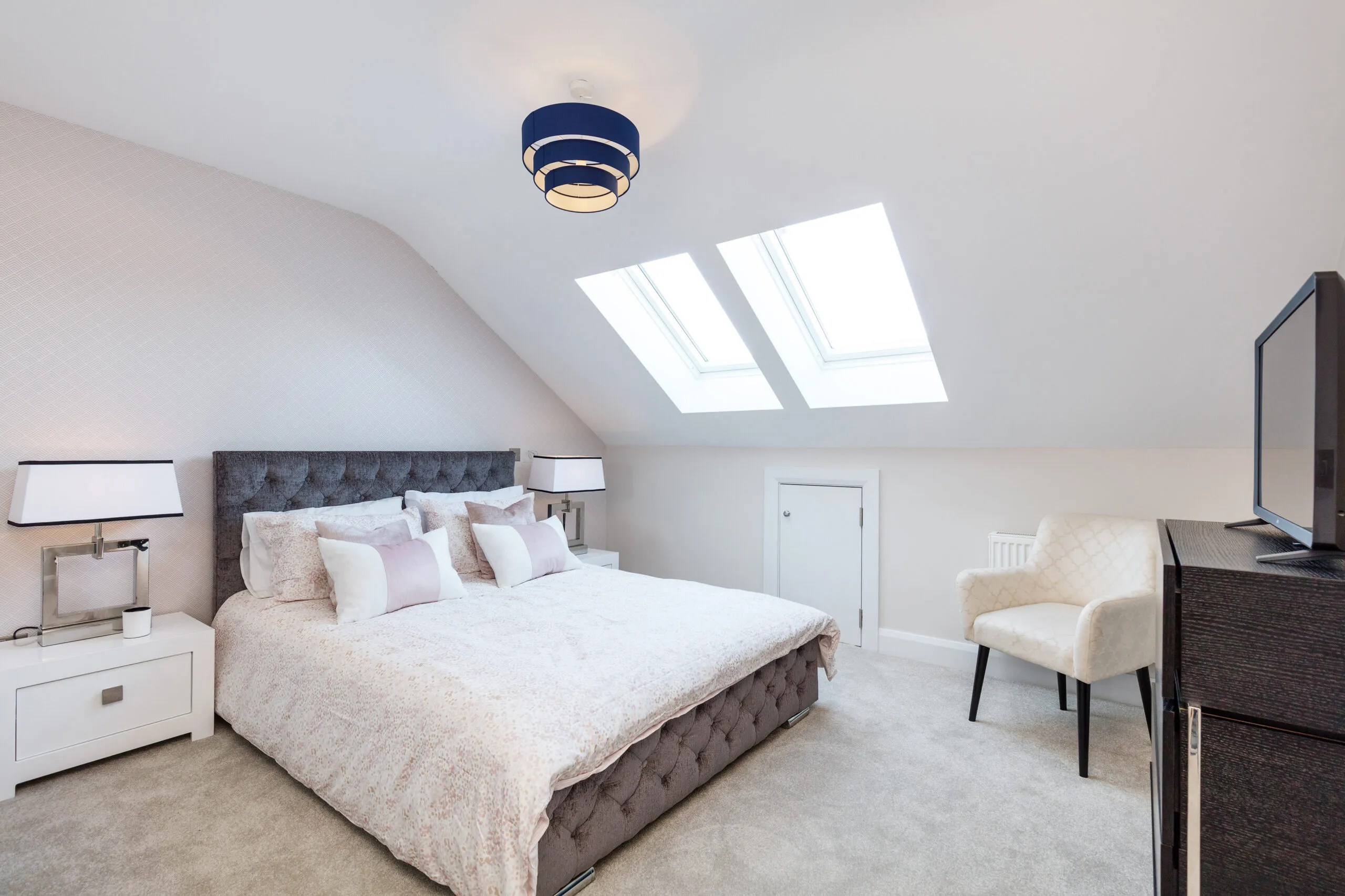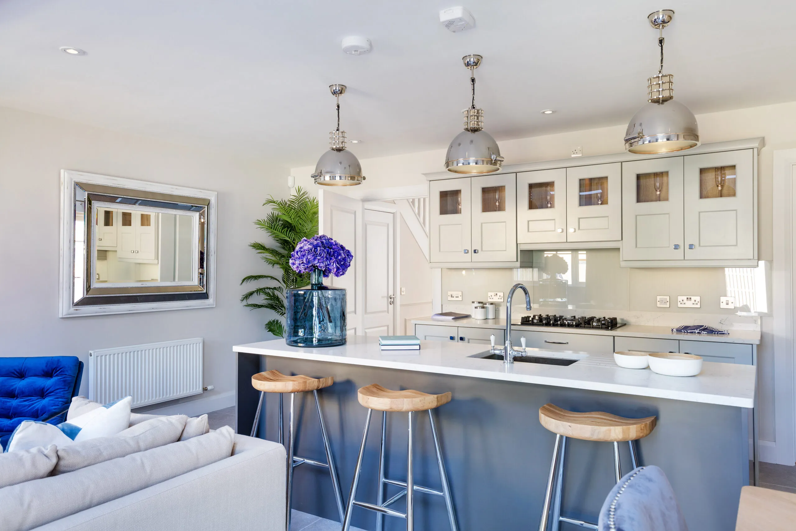 Phase 1 introduced a New England-inspired aesthetic with a contemporary twist, incorporating high-polished chrome furniture, luxurious velvet finishes, wall panelling, and subtle nautical touches using deep blue accents in soft furnishings and accessories. Phase 2, delivered almost two years later, offered a refreshed take on the original design with muted neutral paint tones, decorative beading, and furniture in complementary shades with rich textures.